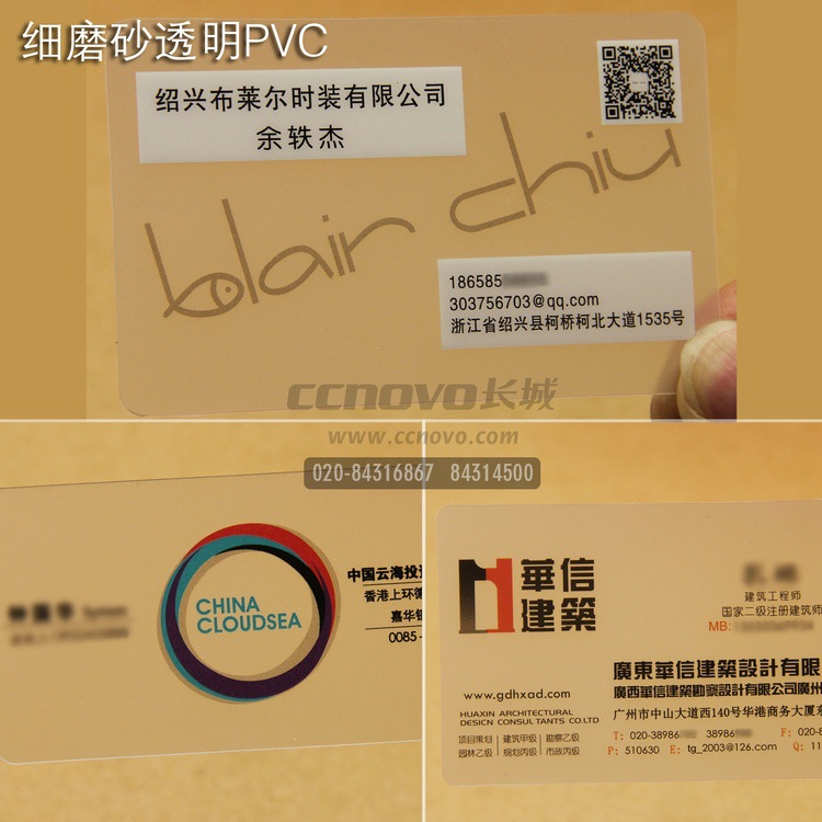 透明細砂PVC名片(單面)防油、防水、可以彎曲,外觀精美,個性,比較吸引眼光。