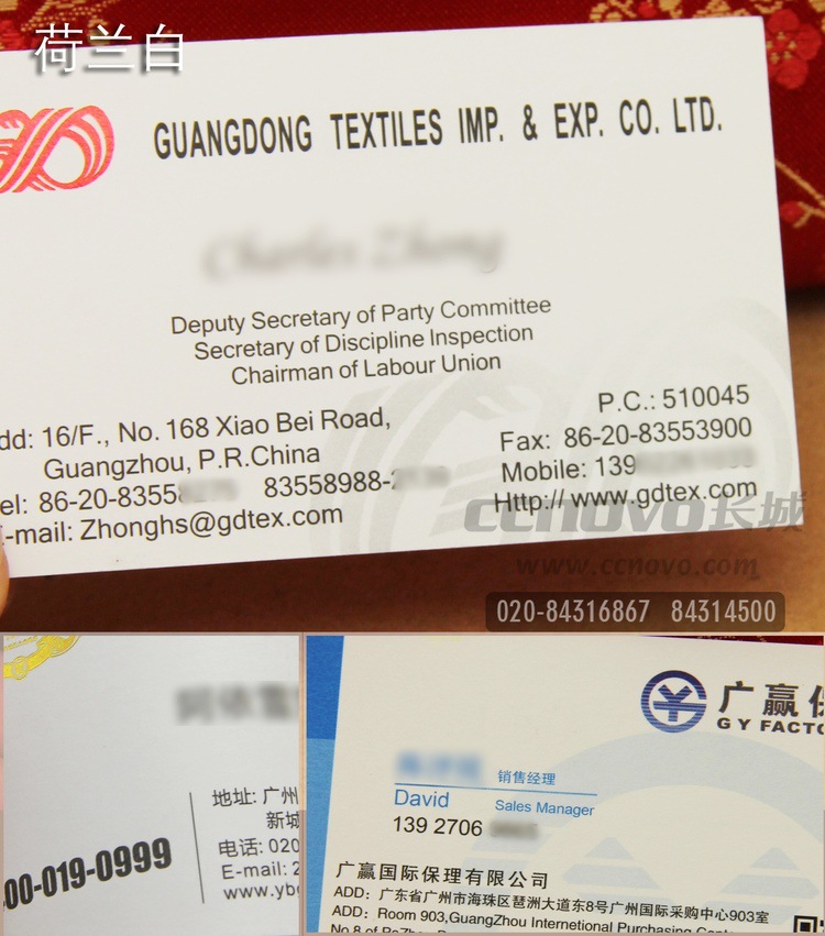名片特點:廣州長城印刷專業名片印刷22年,提供過100種不同的名片印刷紙張