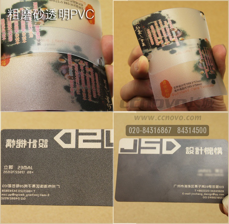 透明粗砂pvc名片(單面)防油、防水、可以彎曲,外觀不變色、材質堅硬、回彈性良好等優點。