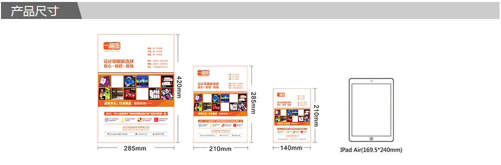 廣告彩頁印刷報價規格參數 商品名稱 常用銅版紙宣傳單 材質類型 157克銅版,200克銅版,250克銅版 成品尺寸 420*285mm 210*285mm 210*140mm 印刷數量 500張起印 生產方式 合版 加工工藝 覆啞膜......