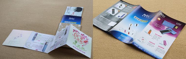 折頁(yè)是宣傳單一種常見(jiàn)的樣式,大部分采用四色印刷,一般為8開(kāi)二折或四折,16開(kāi)二折或三折,中間內(nèi)容視產(chǎn)品而定。設(shè)計(jì)要盡量精致美觀, 展示的產(chǎn)品應(yīng)選擇佳角度,力求逼真和清晰,字體清秀,色調(diào)與內(nèi)容和諧,以增加客戶(hù)購(gòu)買(mǎi)力為終目的。